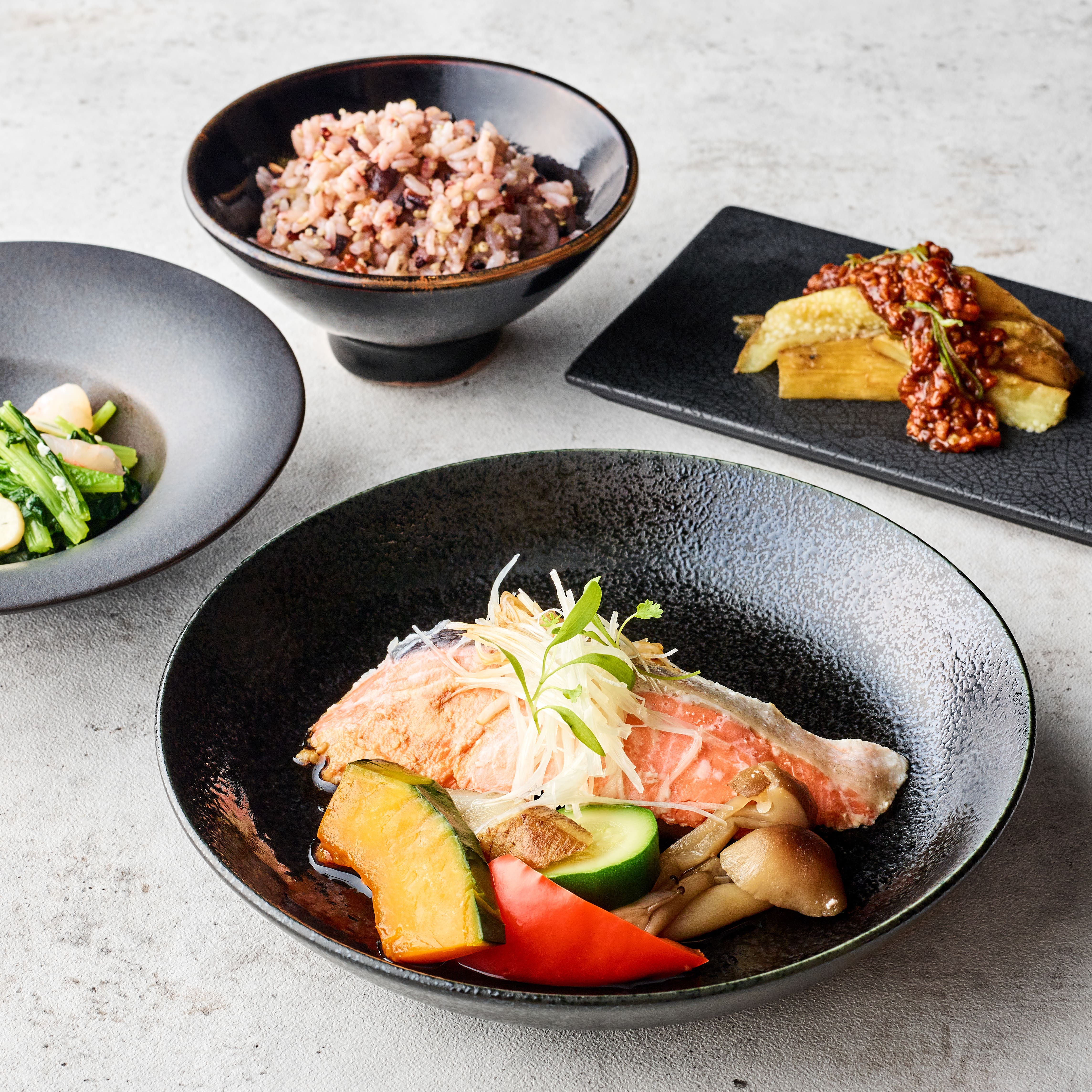 蒸し魚(銀鮭(チリ産)、絹ごし豆腐、ねぎ、落花生油、卵白、その他)